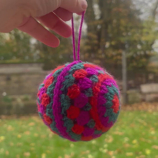 Why not add a touch of handmade to your christmas tree with this colourful granny style crochet bauble.